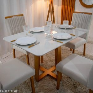Mesa de Jantar Simpatia 1.08×1.08 Circular Com 4 cadeiras Sophia