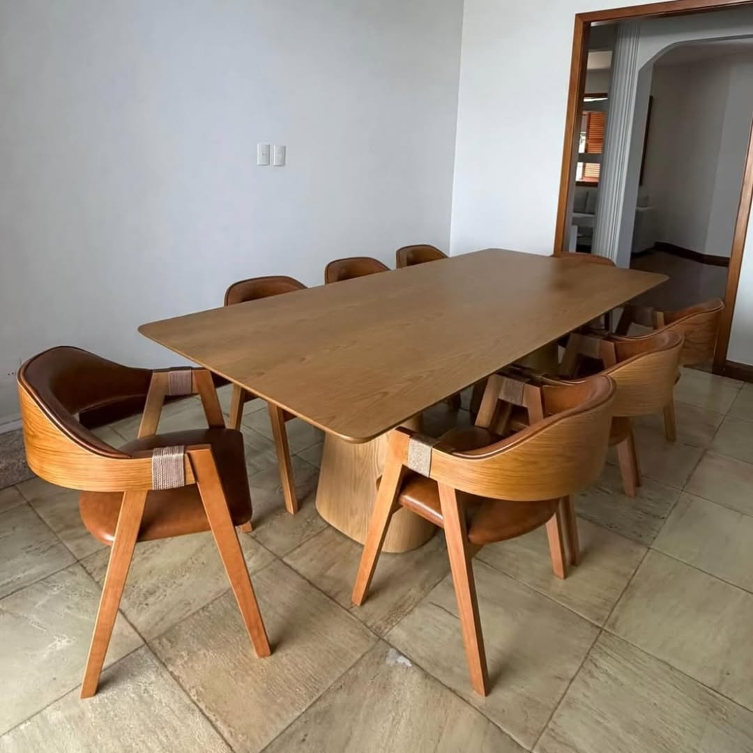 Mesa de Jantar Dubai Tampo Londres Cinamomo 160×80 6 Cadeiras Lisboa Veludo Bege 512 Madeira Maciça