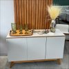 Produzido em 100% MDF, com acabamento premium, com 6 portas em vidro reflecta, emolduradas por um requadro em alumínio que revela um interior iluminado por uma delicada luz LED em tom quente, aplicada nas laterais e divisórias.