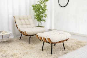 Mesa Redonda Malva 110cm – J SILVA MÓVEIS Cadeiras Pérola Mel Laminado/Linho Bege 1000 – WJ DECOR